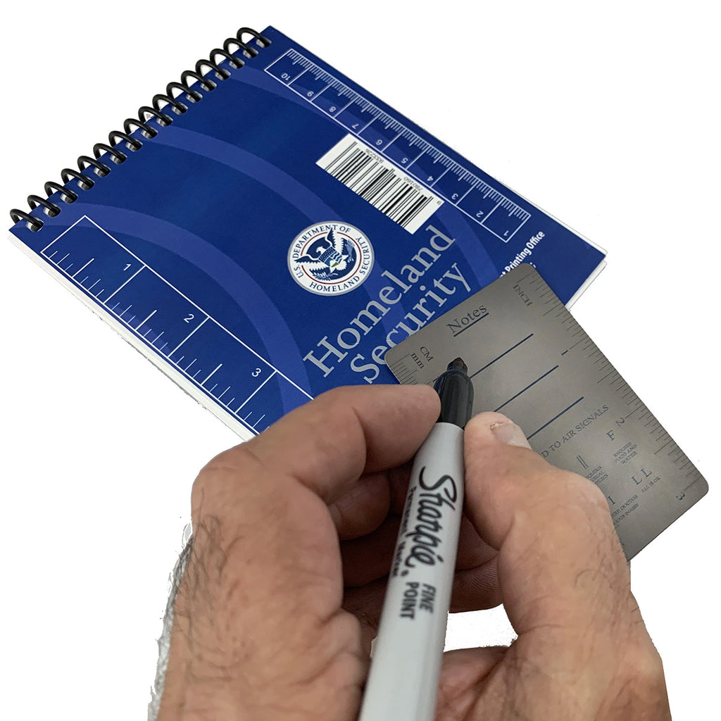 The Titanium COMM Card is a versatile tool which can be used for daily use or when disaster strikes. The front of the card has International Morse Code and SOS. The back has measurements, ground to air signals and a notes section for critical info.