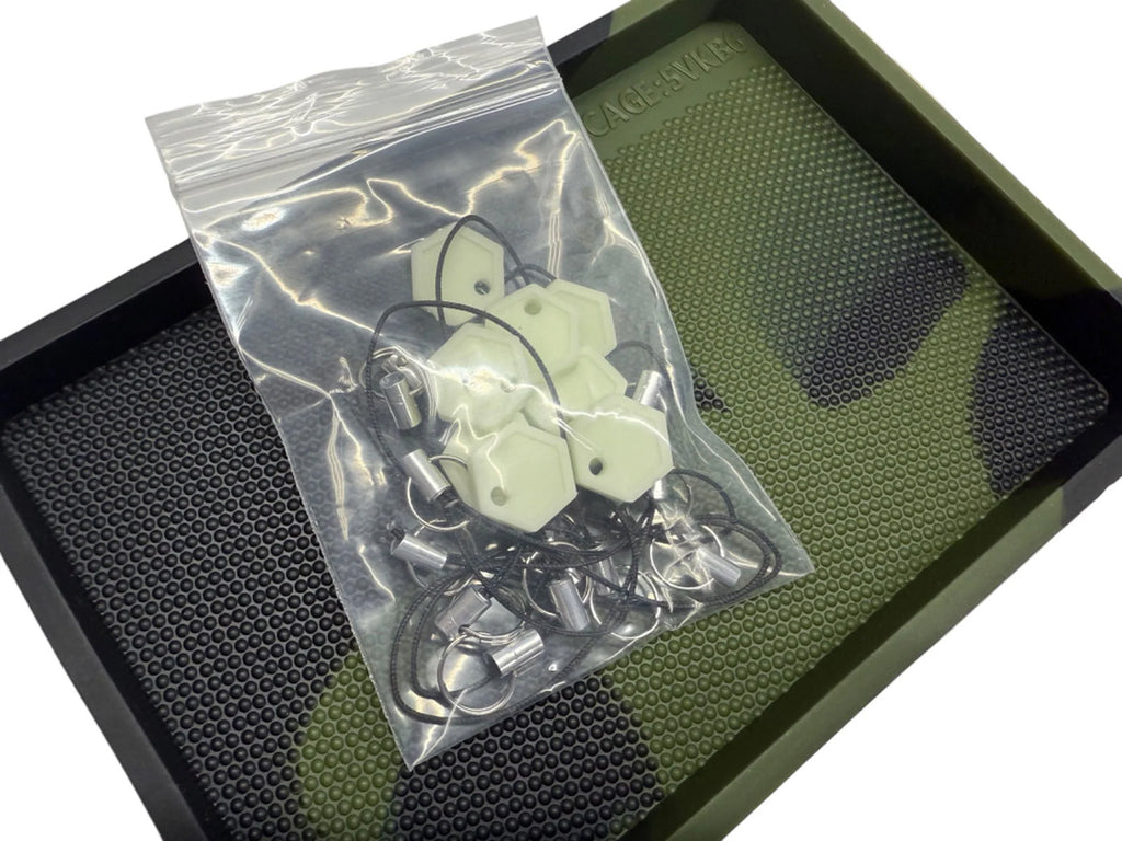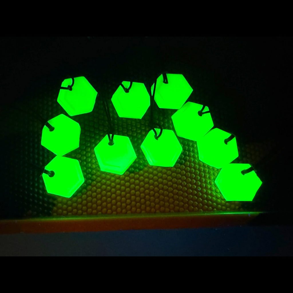 These mini 12.4mm x 3.3mm Universal Glow Marker (UGM) or simply Glow In The Dark Clear Hard Resin are perfect for marking all your gear making it easy to find in the dark. These are a super bright, long lasting, reusable glow markers that do not wear out.